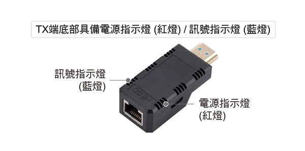 具備電源指示燈 (紅燈) / 訊號指示燈 (藍燈),方便查看連接狀態: