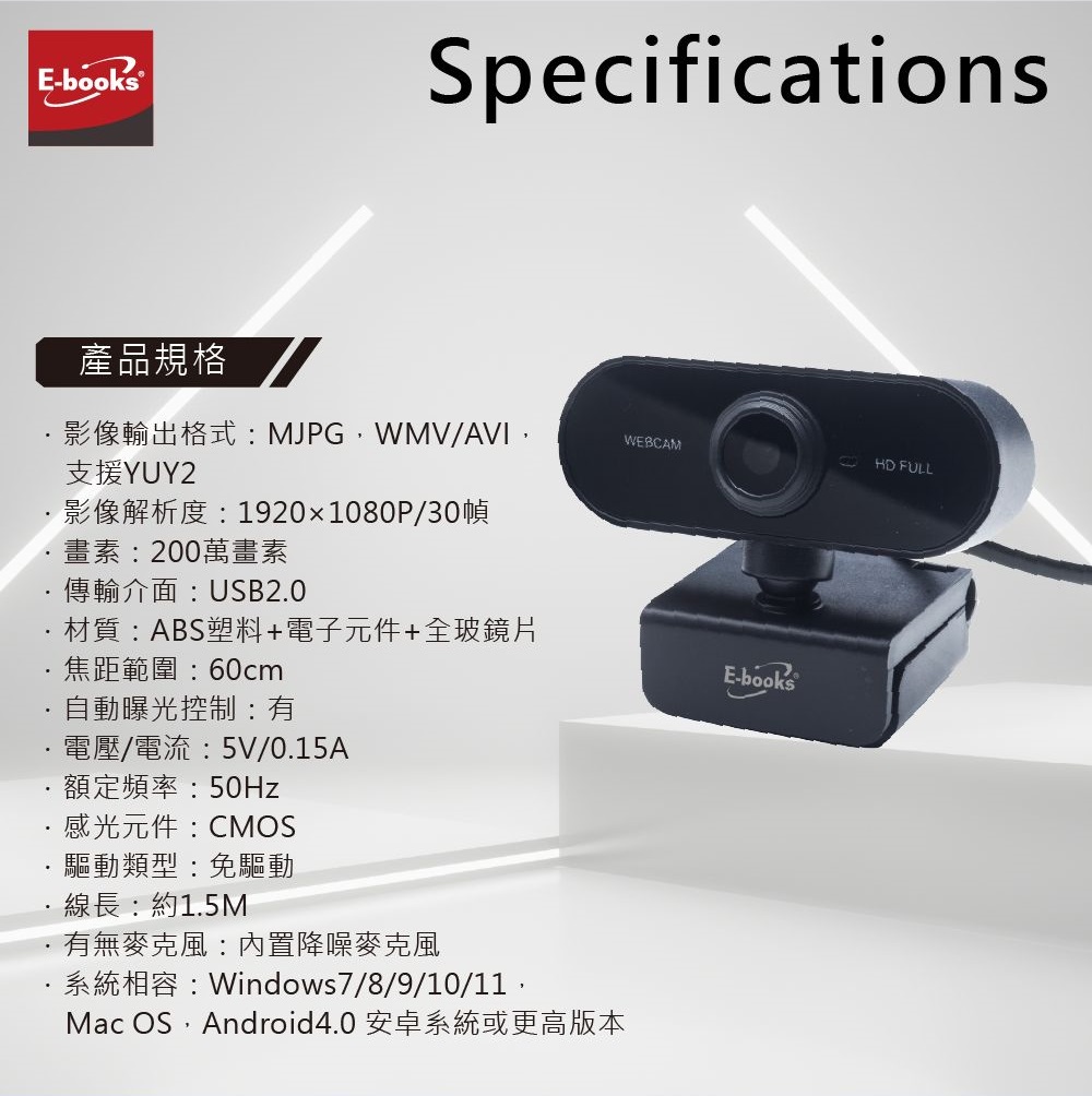 E-books W17 1080P高畫質HD網路攝影機