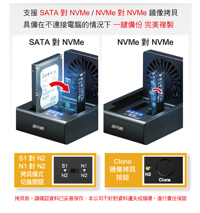 ● 不連接電腦的情況下,一鍵備份完美複製,自動鏡像功能