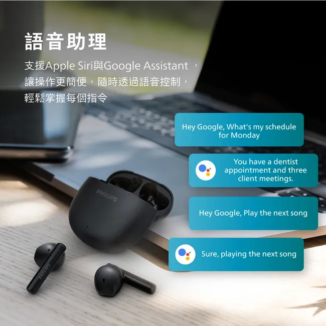 支援的語音助理:Apple Siri、Google