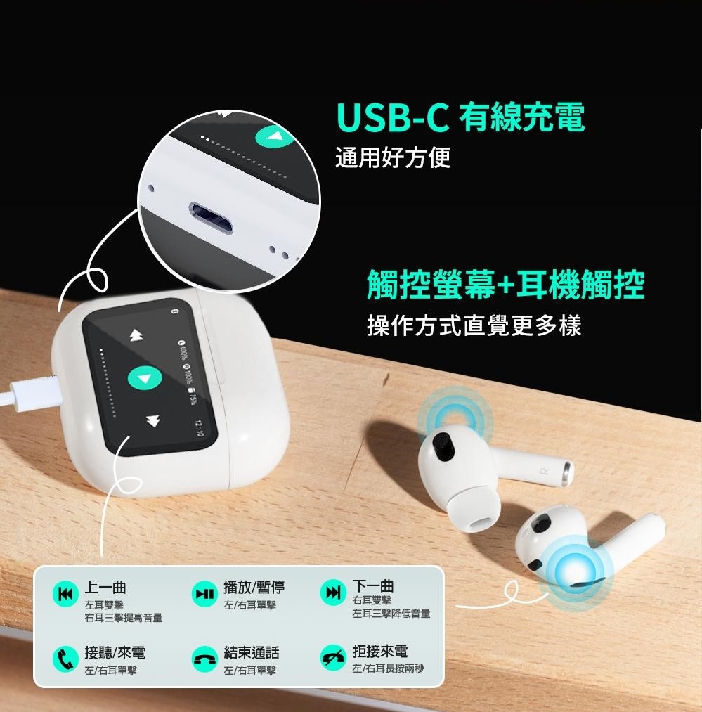 外觀設計:充電盒觸控面板+吊飾孔,實用機能與質感並重。