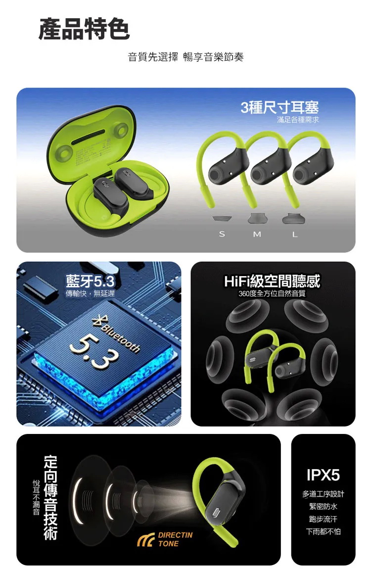 三點支撐結構,貼耳後掛,運動時不易脫落。