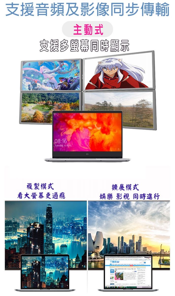 ‧支援各類設備DISPLAYPORT輸出機種的桌上型電腦 及筆記型電腦,以及未來新出機種皆適用
