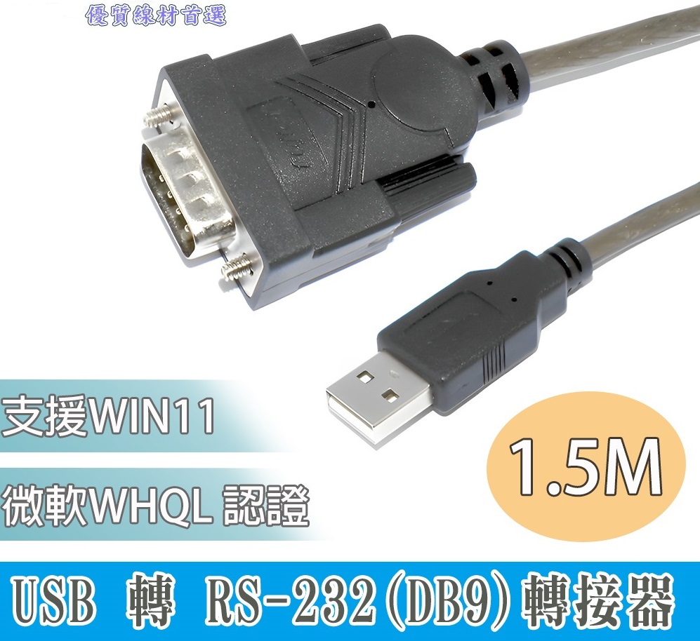 •支援標準 RS232介面,標準 USB 轉 RS232 DB-9公接頭