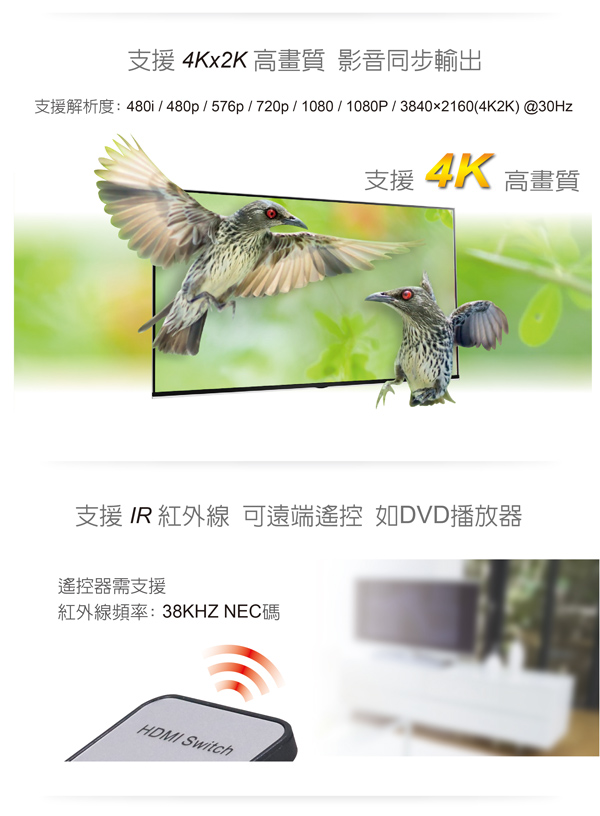 支援解析度最高可達 4K(3840×2160) @30Hz