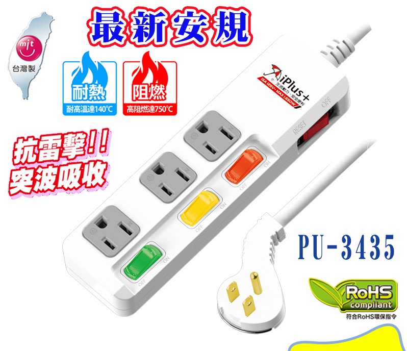■通過經濟部標準檢驗局最新安全規範檢驗 ■本產品領先業界投保最高3000萬產品責任險 ■超薄型平貼式省力插頭 ■3組一對一獨立開關插座 ■多了一組內建過載自動斷電總開關 ■下陷式開關設計,可防止誤觸開關 ■6KV抗雷擊!!突波吸收器 ■全機身採高耐熱防火PC機身材質 ■高導率4N級無氧銅+雙絕緣線材 ■變壓器專用插座X1 ■一體成型電路設計 ■貼心壁掛孔設計