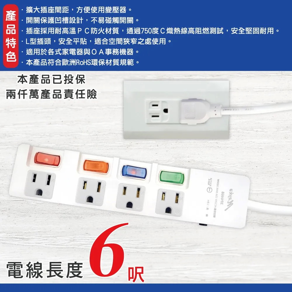 ◆L型插頭 堅固耐用 ◆獨立開關保護 凹槽設計