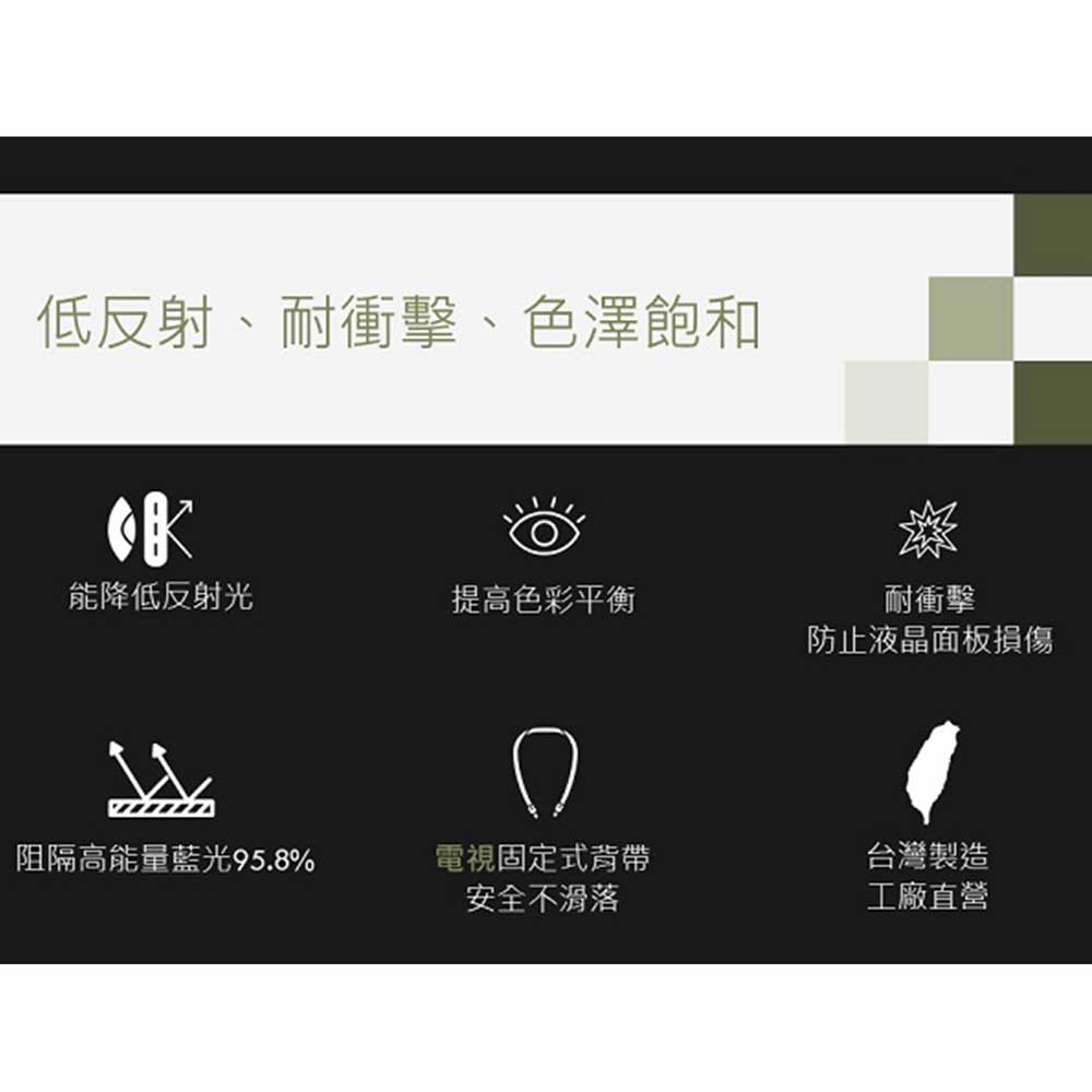 •電視具備背帶結構,在受衝擊時如地震、孩童碰撞,降低螢幕破裂風險。