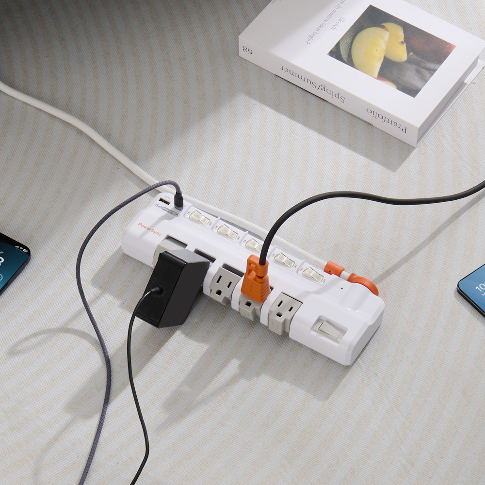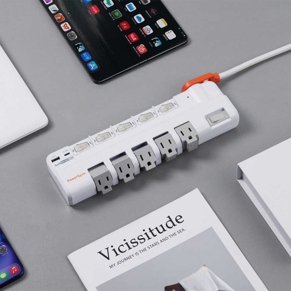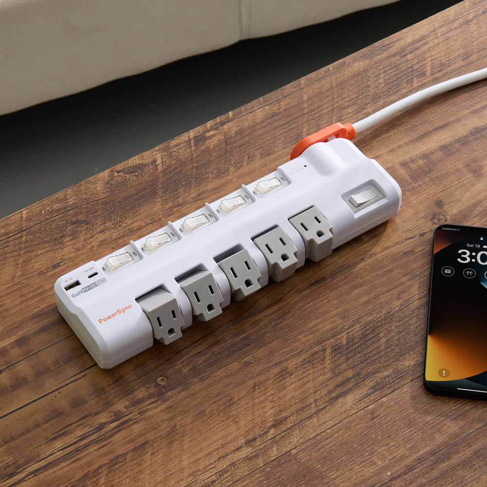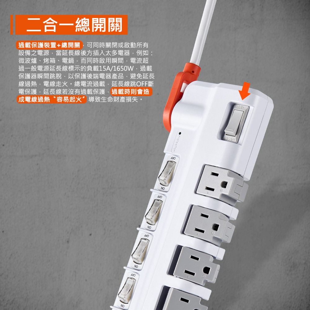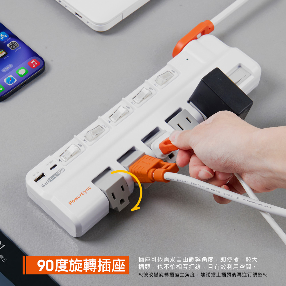 ● 品名:6開5插2埠1A1C防雷抗搖擺旋轉延長線
