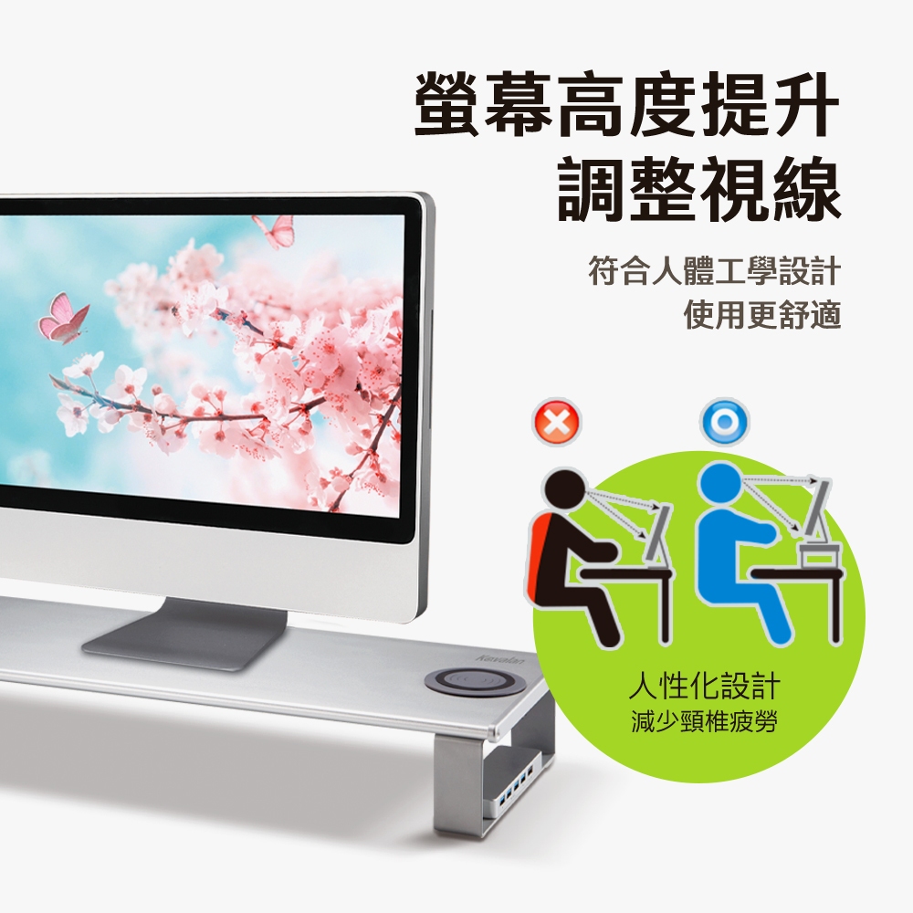 ● 螢幕高度提升調整視線,減少頸椎疲勞