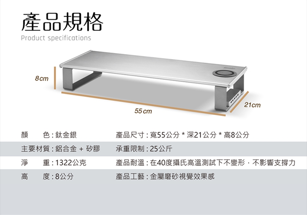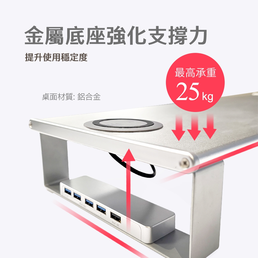 ● 金屬底座強化支撐力,最高可承重25公斤