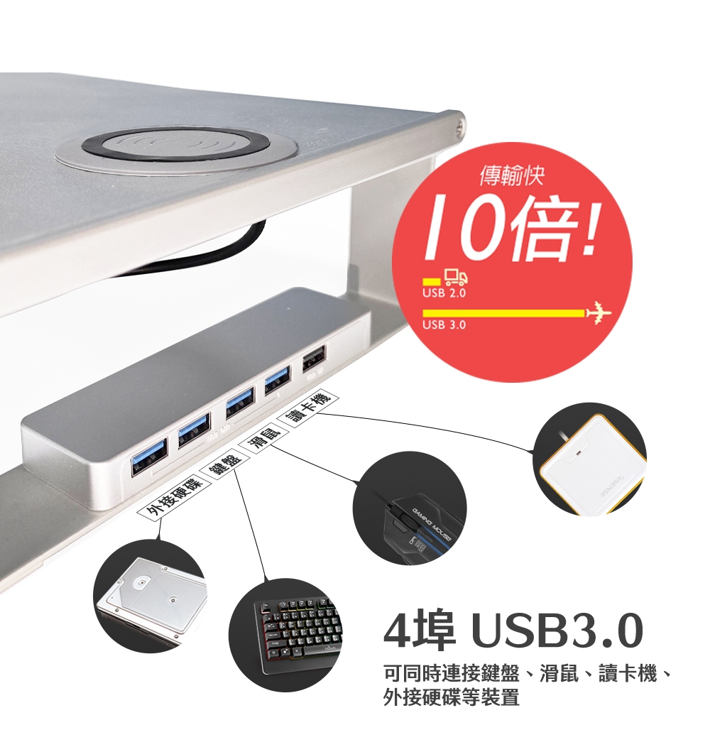 ● 4埠USB3.0可同時連接鍵盤、滑鼠、讀卡機、外接硬碟等裝置