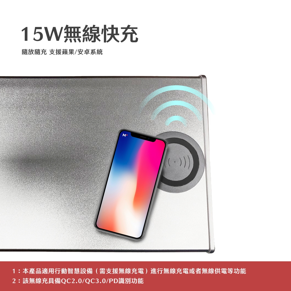 3 : 15W無線快充USB線請連接具有快充規格之電源供應器使用