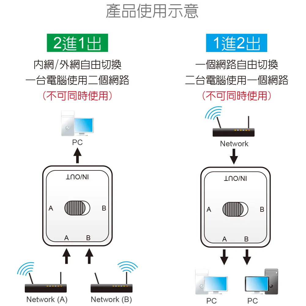 一鍵切換,免插拔網路線