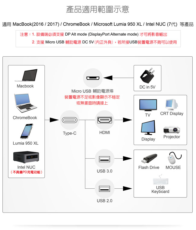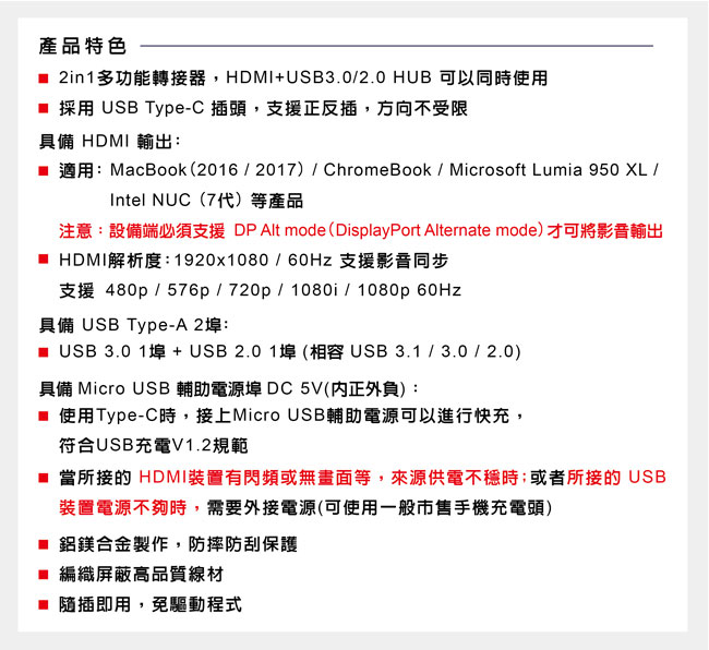 設備端必須支援 DP Alt mode(DisplayPort Alternate mode)才可將影音輸出