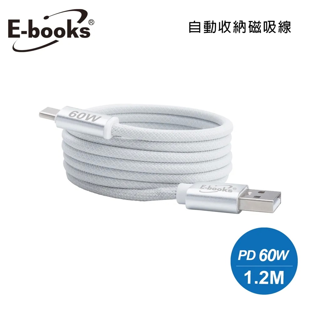E-books XA46鋁製 USB-A to C 60W 磁吸充電傳輸線-1.2M