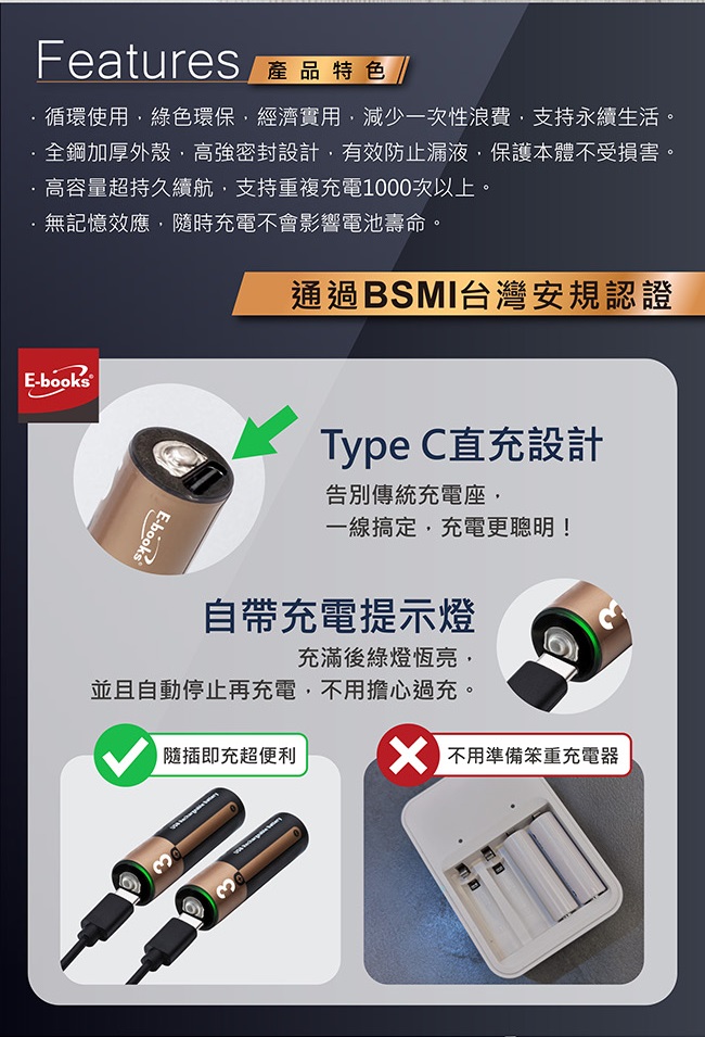 本產品支援一般行動電源充電,請避免使用具有快充功能之裝置。