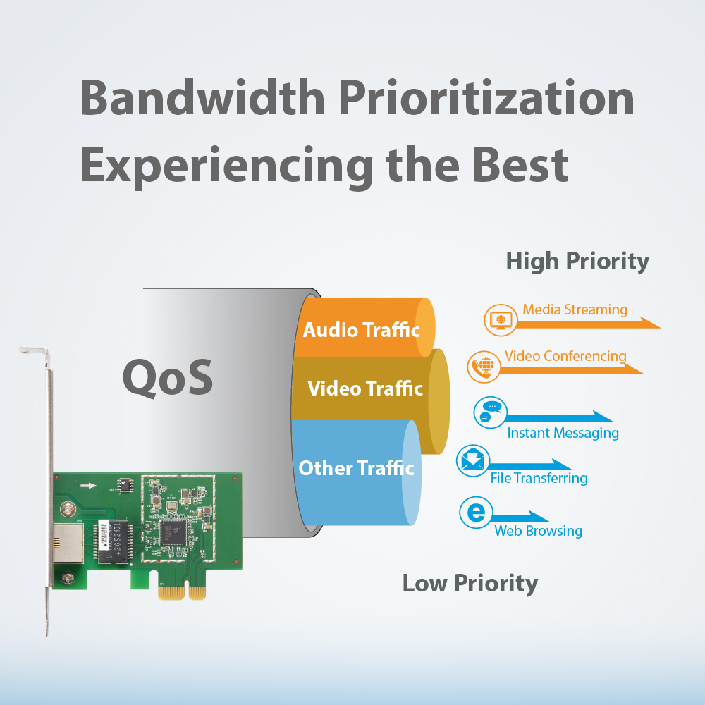 具 802.1p 頻寬管控可將一些應用進行優先順序的優化,從而獲得流暢的連接使用體驗,讓您可以輕鬆享受遊戲,視訊會議或媒體流的無延遲流量。