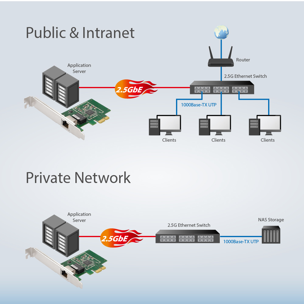提供了一個2.5Gigabit RJ45介面,其性能是現有Gigabit 網卡傳輸的2.5倍。它高達5Gbps的全雙工傳輸性能更適用於您的伺服器。EN-9225TX-E 具有 PCI Express 2.0 x1 的介面規格為主機板提供了最佳的升級解決方案。