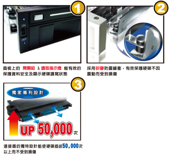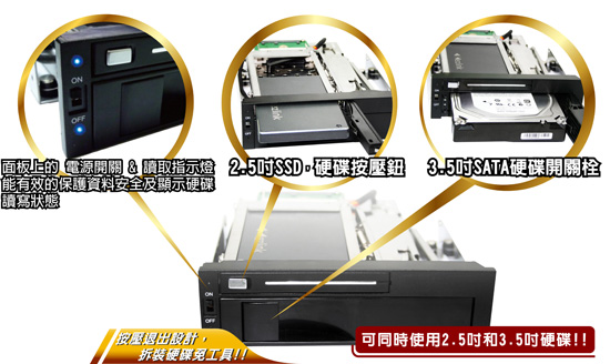 ◆ 支援開機、關機後可快速插拔更換硬碟(系統)