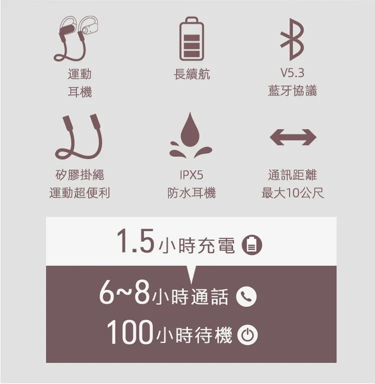IPX5專業防水,多道工序設計,緊密防水,適合跑步流汗和雨天使用。